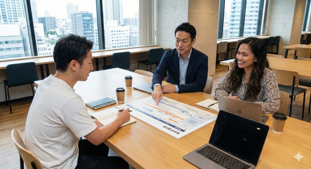 オンラインと通学(留学)をシームレスに統合し、日本人コーチが学習プランの設計や進捗管理を、厳選されたフィリピン人講師(採用率1%以下)が実技指導を行うという分業体制が確立されています。
